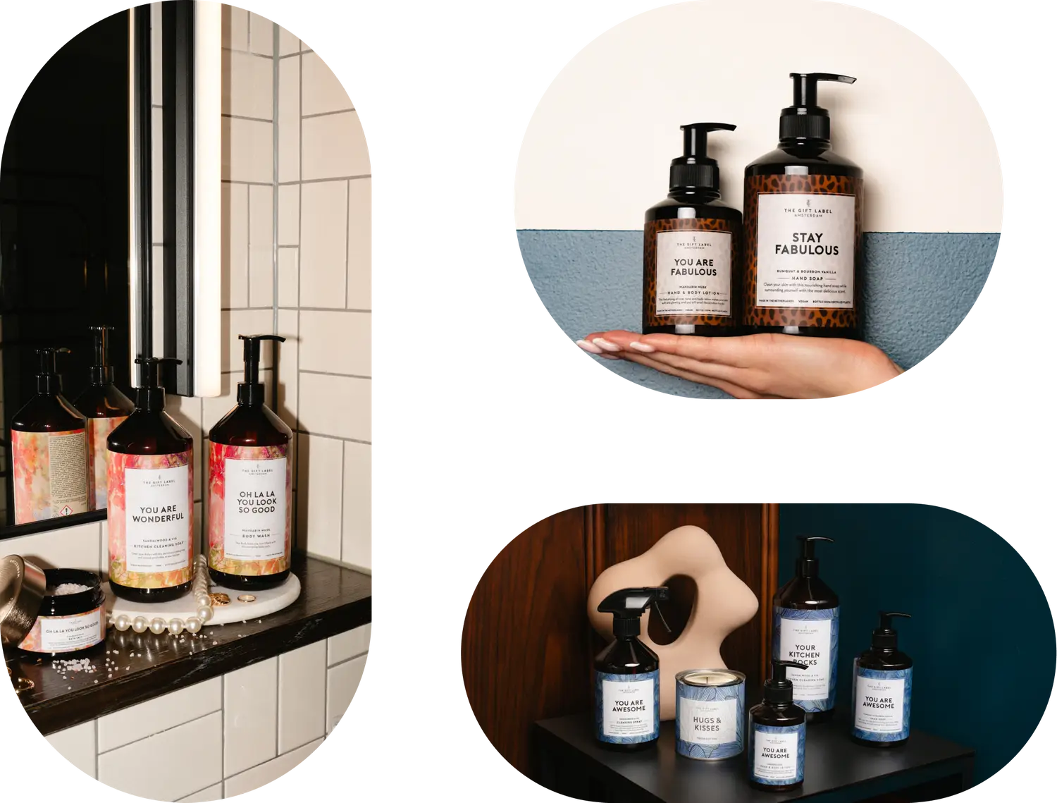 The Gift Label is a personal care and gifting brand based in Amsterdam, featuring a diverse range of products, from hand soap and body wash to fragrance sticks and room spray.